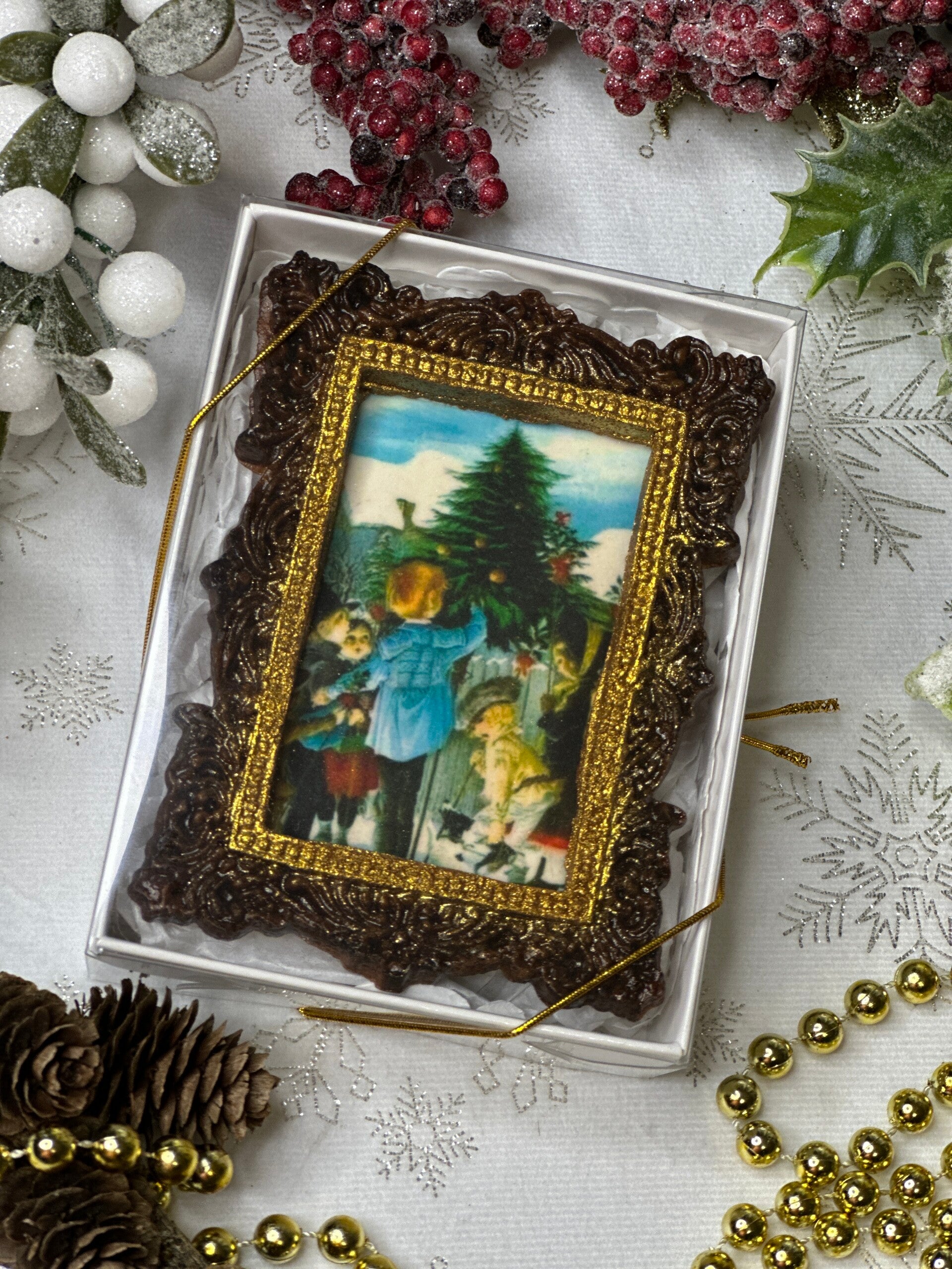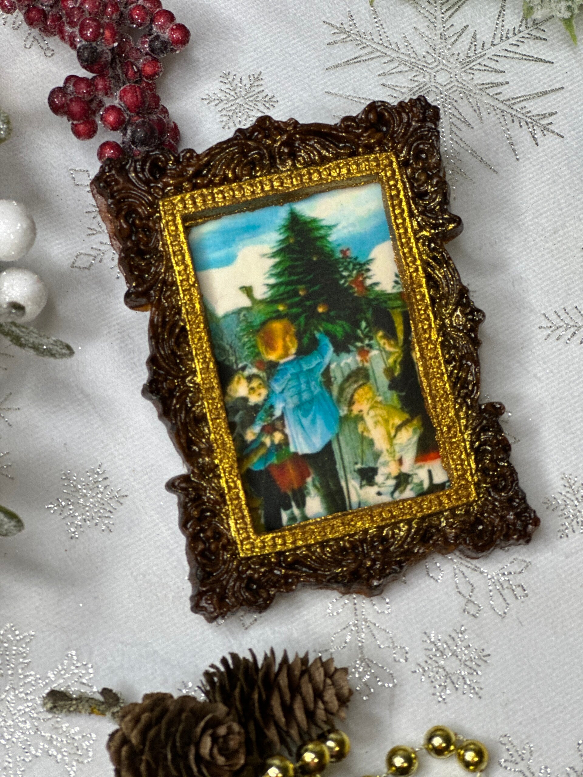 Get into holiday spirit with our special gingerbread bisquits, decorated with icing and a Christmas themed image that resembles a painting with a hand-made frame. Aromatic gingerbread, prepared according to a traditional recipe with the addition of fragrant ginger and cinnamon, will be the ideal addition to your winter evenings.