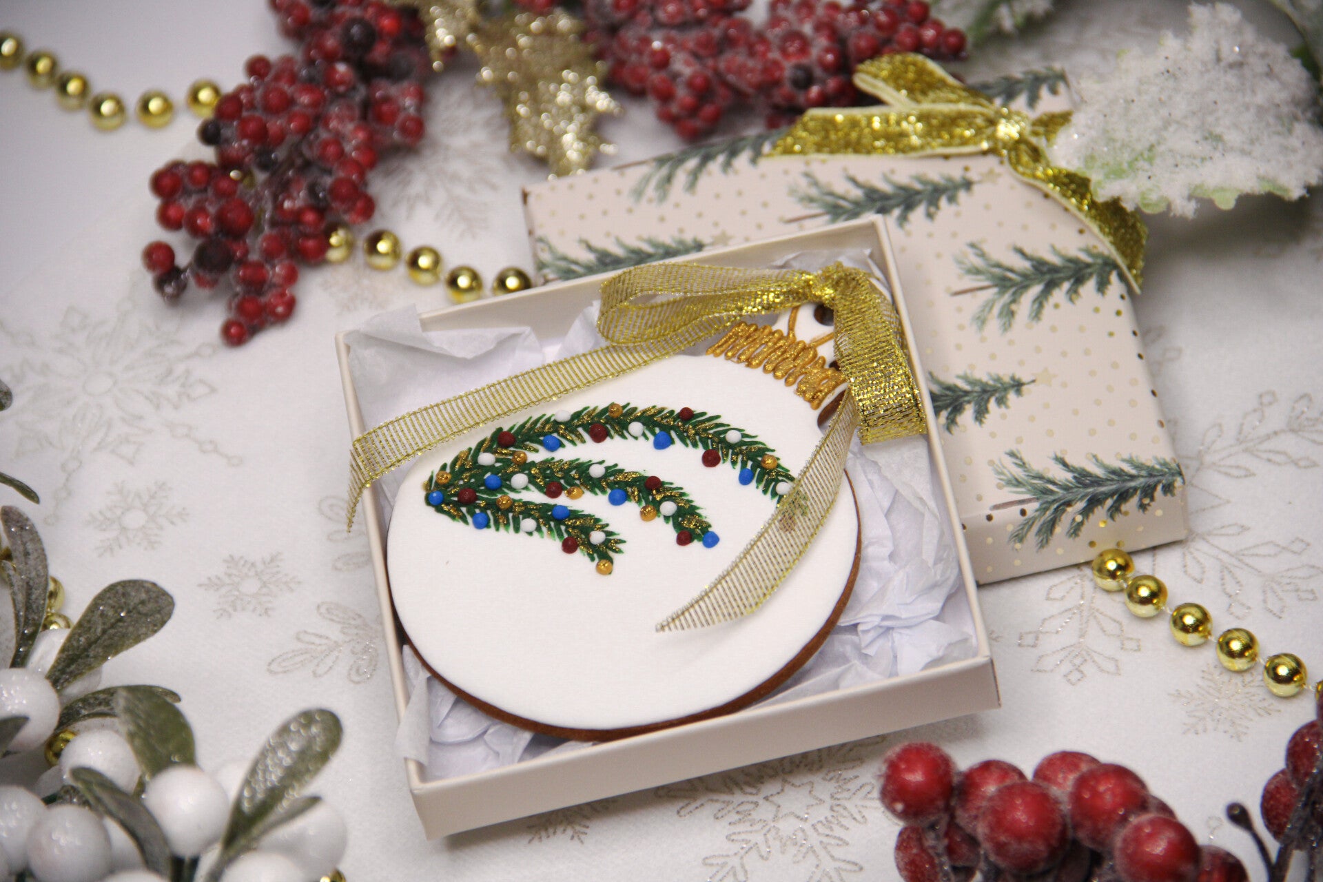 Get into holiday spirit with our special gingerbread bisquits, decorated with icing and a Christmas tree ornaments which resemble Chritmas bulbs. Aromatic gingerbread, prepared according to a traditional recipe with the addition of fragrant ginger and cinnamon, will be the ideal addition to your winter evenings.
